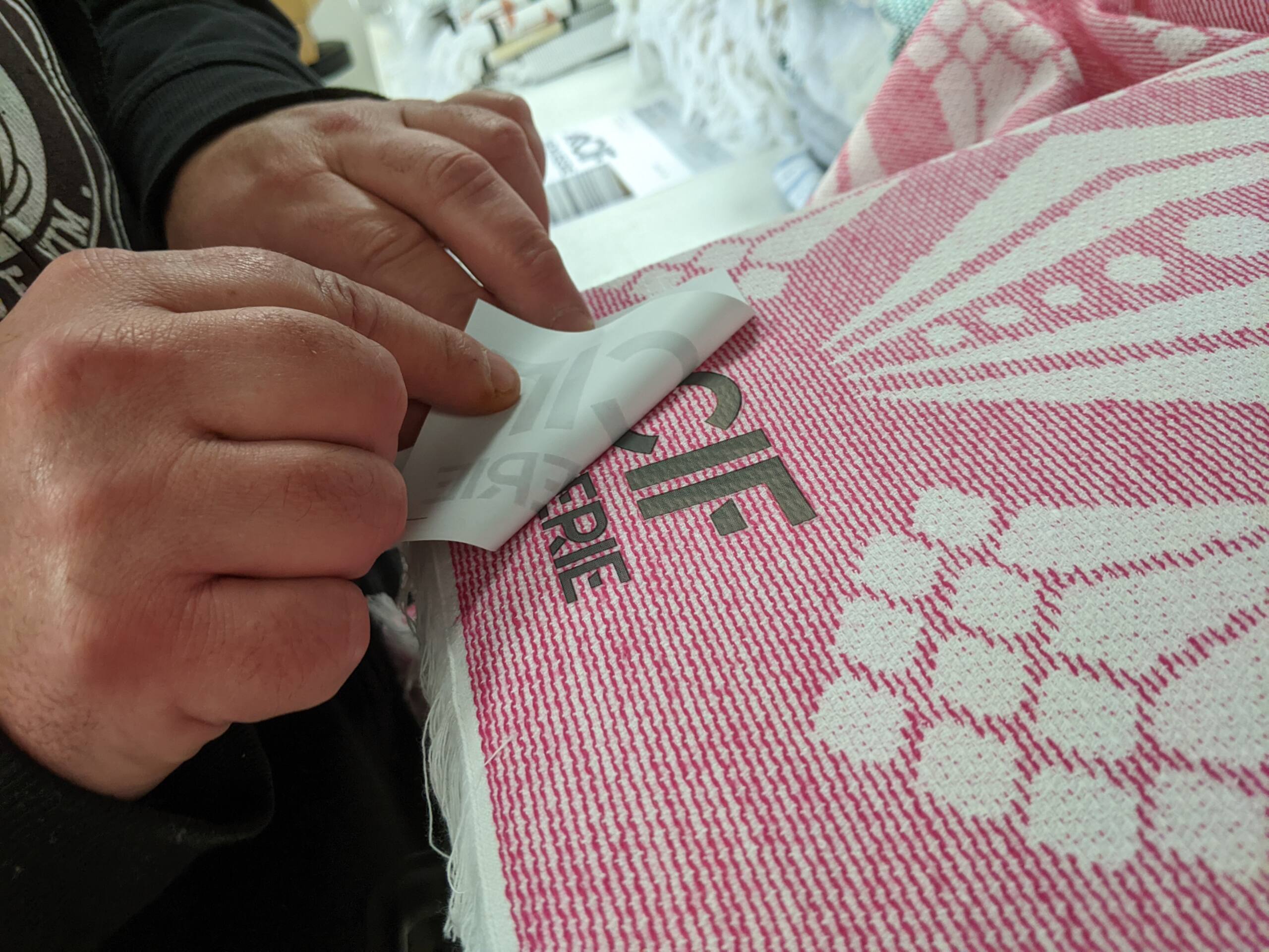Reportage en images des différentes étapes du marquage personnalisé de textile par transfert sérigraphique.