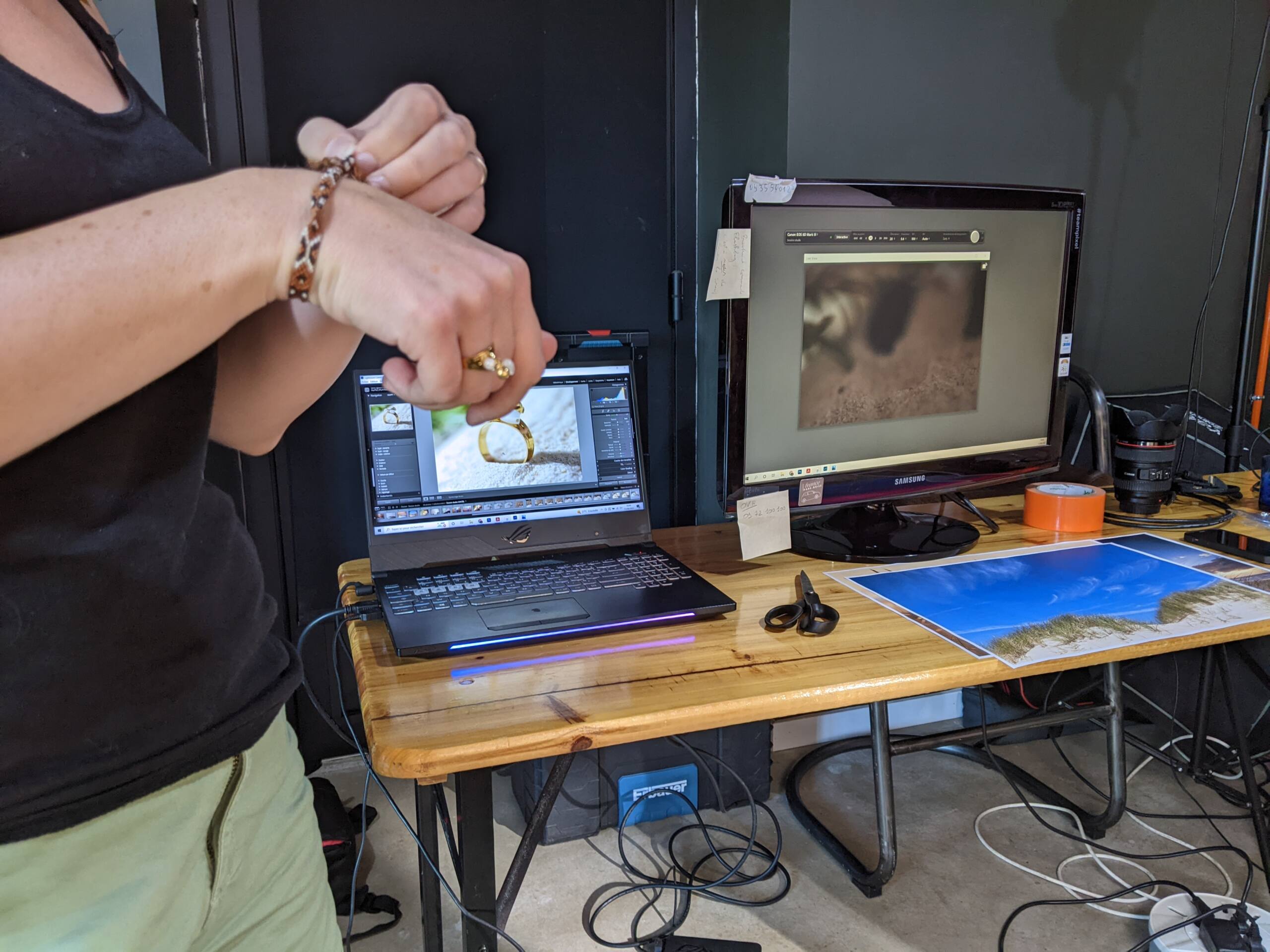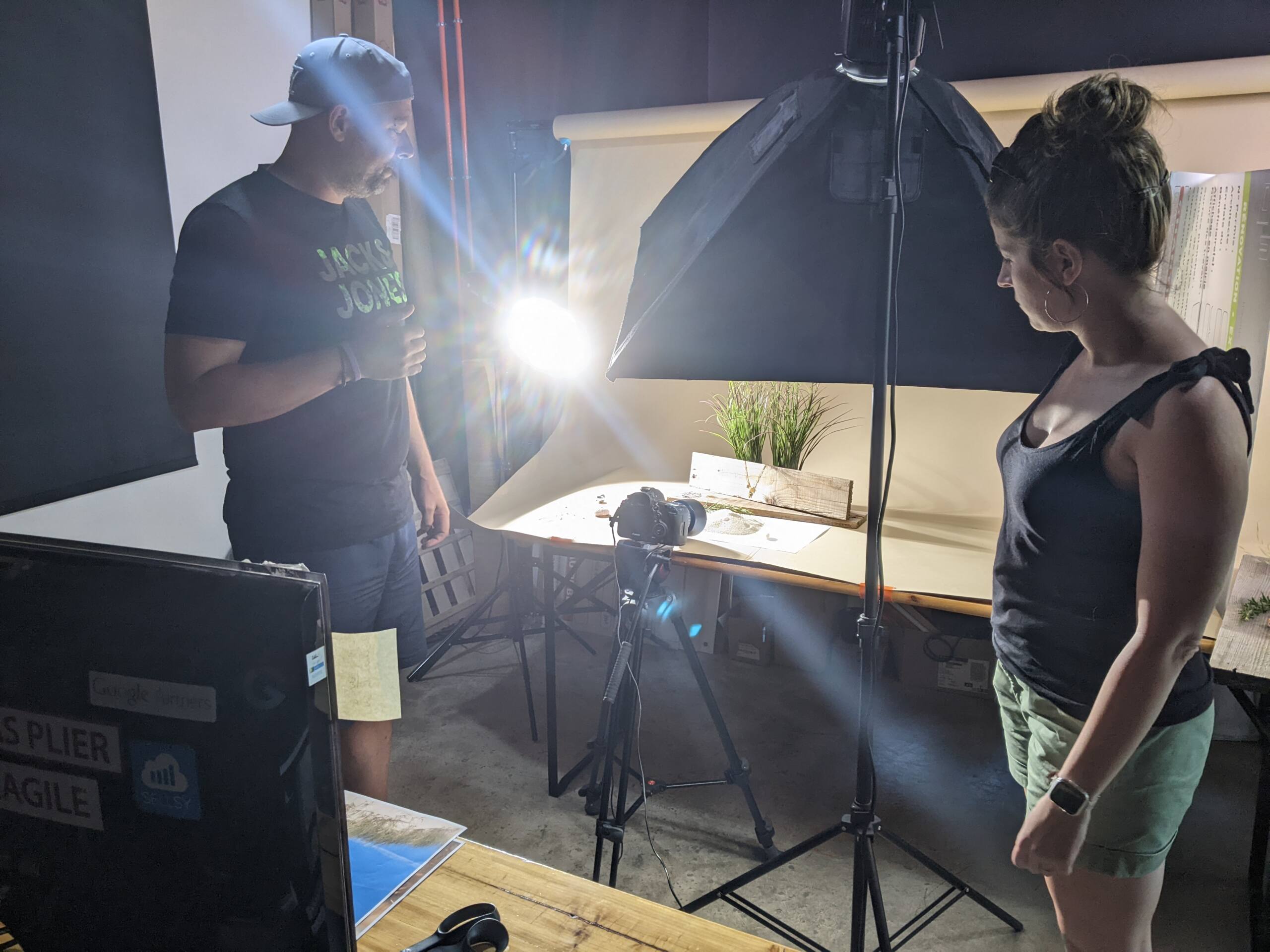 Notre photographe est ensuite allé dans l’atelier à Dolus pour assurer la bonne mise en place du studio, et travailler les premières images de photos de produits.