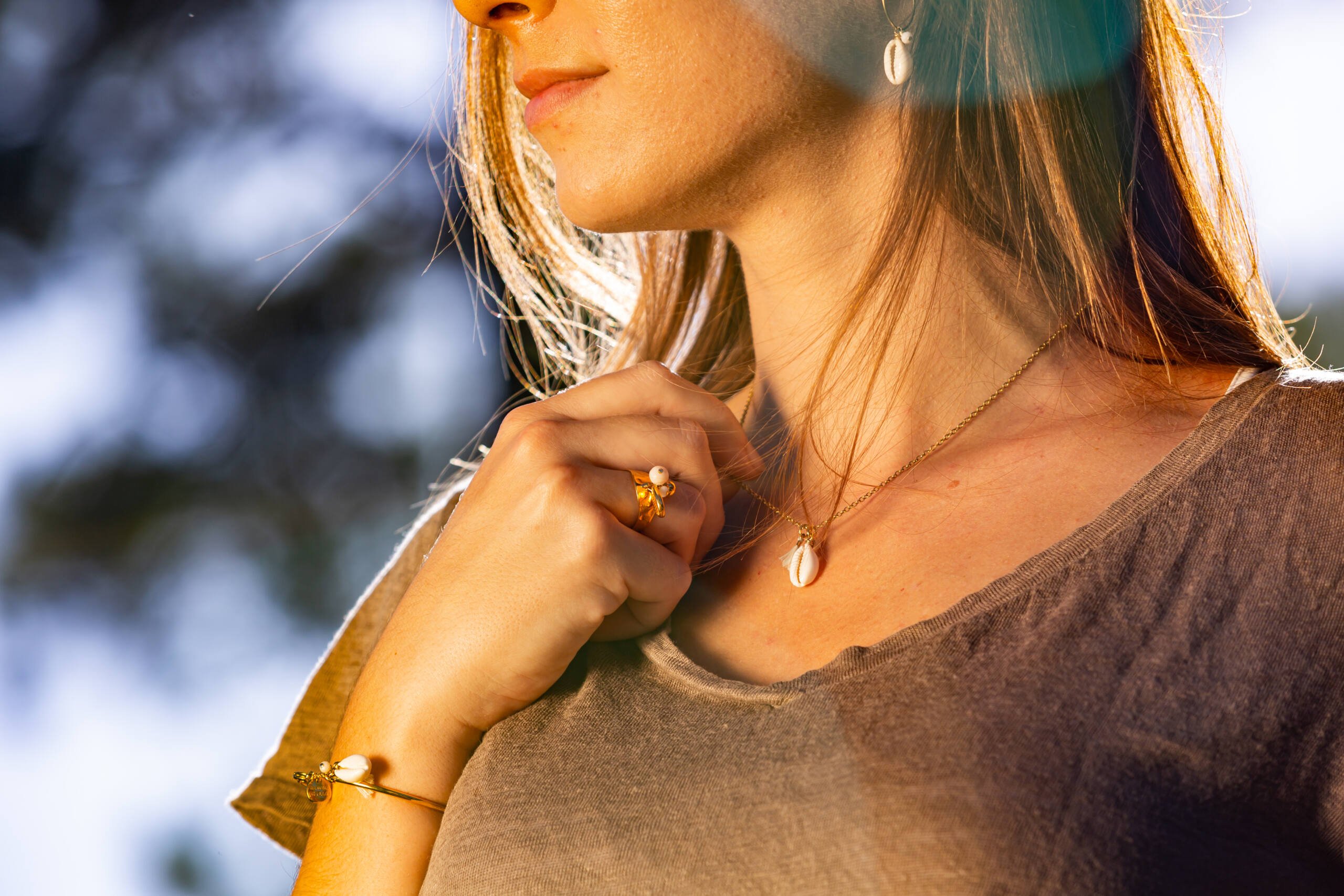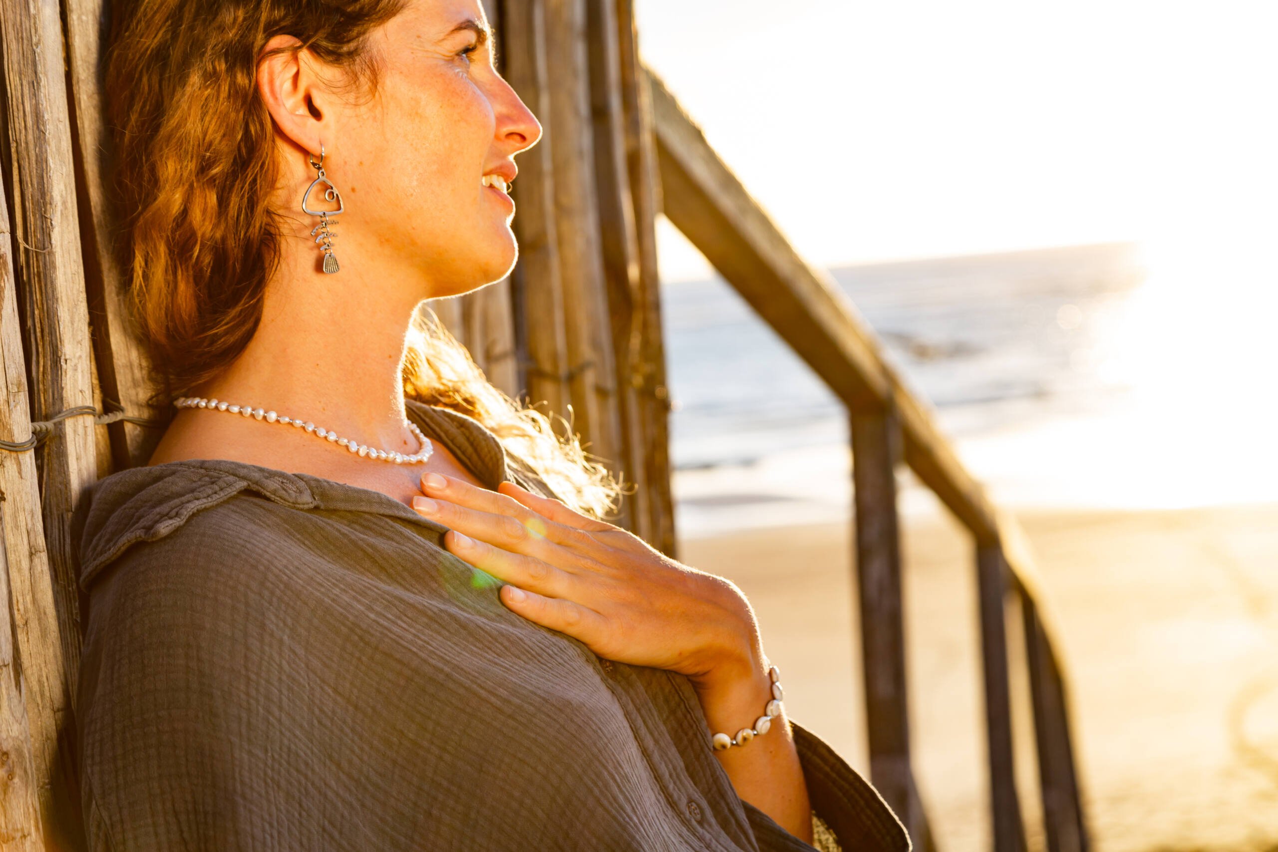 Pour les photos de produits (en vente sur le site https://www.retourdeplage.fr/), notre agence et nos photographes ont travaillé sur un référentiel afin de reproduire en studio les décors et les lumières pour des photos impactantes. Le défi est de reproduire à la fois les détails des bijoux, de mettre en valeur le produit dans un environnement épuré et évocateur et surtout de créer des lumières chaudes, dans l’esprit de la marque.